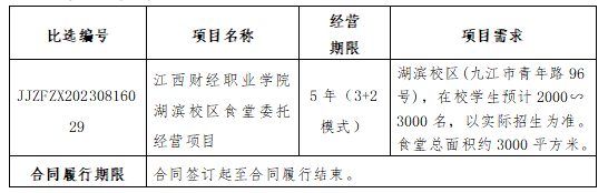 九江振發(fā)招標咨詢有限公司有關(guān)于江西財經(jīng)職業(yè)學院湖濱校區(qū)食堂委托經(jīng)營項目(比選編號:JJZFZX20230816029)比選公告