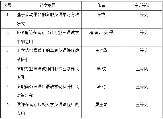 近日江西省外語學(xué)會(huì)網(wǎng)站公布了2015年優(yōu)秀論文(著)評(píng)選結(jié)果,由我校外國語學(xué)院教師撰寫的6篇論文分別獲得二、三等獎(jiǎng)。這次評(píng)選活動(dòng)吸引了包括全省本科院校在內(nèi)的所有高校外語教師參加,我校教師的獲獎(jiǎng)級(jí)別和獲獎(jiǎng)?wù)撐臄?shù)在省內(nèi)高職高專院校中均排名第一。這是繼外國語學(xué)院榮獲“2014年度學(xué)??蒲邢冗M(jìn)單位”后取得的又一佳績(jī)。外國語學(xué)院多年來一直非常重視科研工作,注重提高教師的科研能力,以科研促教學(xué)成效顯著,教師和學(xué)生在各類競(jìng)賽中都取得了優(yōu)異成績(jī)。