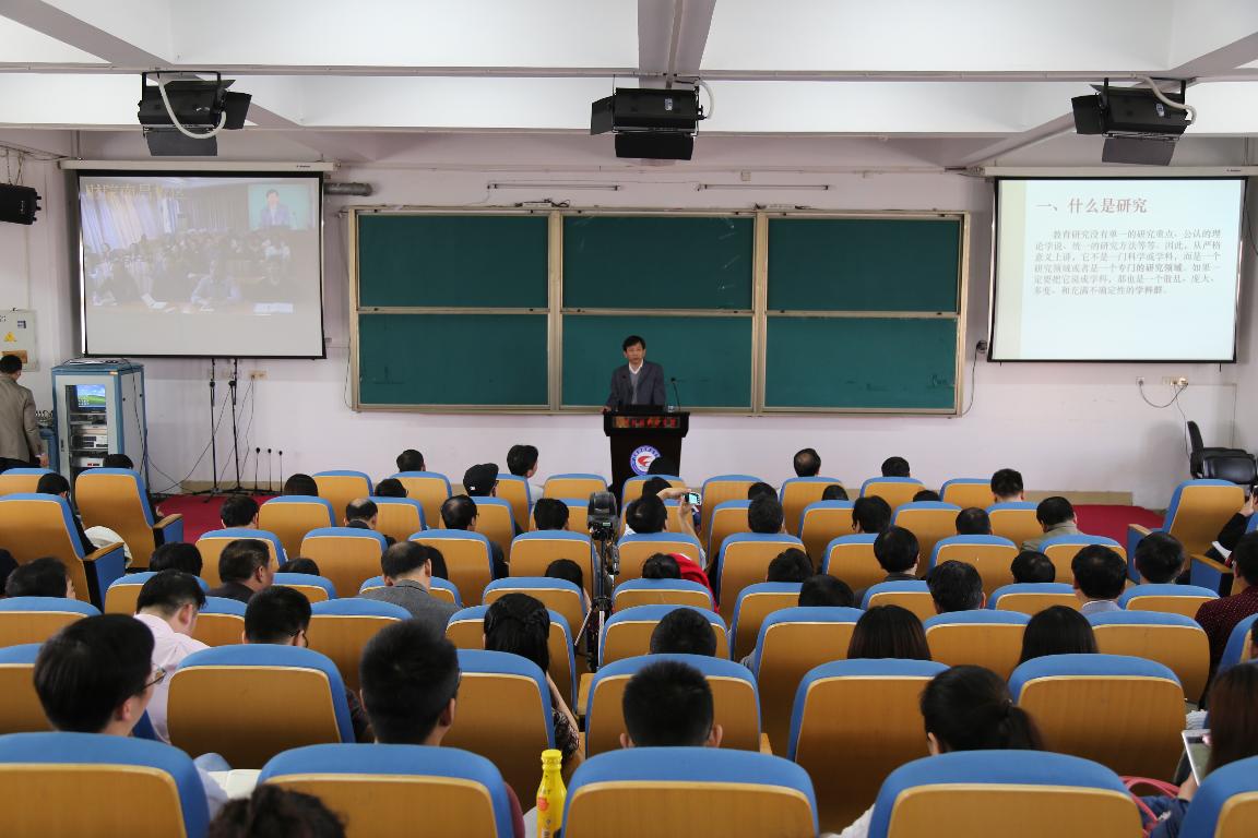 2016年4月13日,江西省教育科學研究所所長、中國家庭教育專業委員會副理事長、江西省教育學會常務副會長、江西省教育科學規劃辦公室主任吳重涵教授應邀為我校教師做了《什么是好的教育研究》的學術報告。