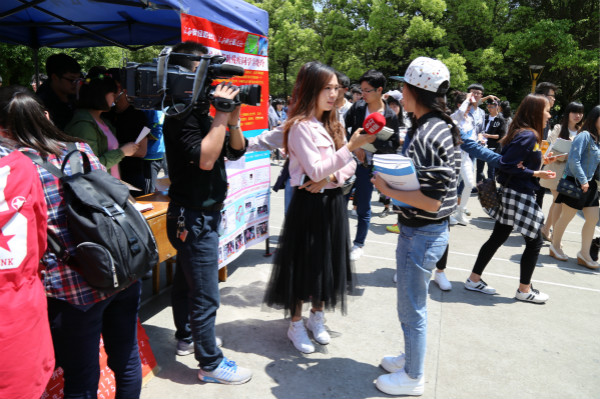 4月19日中午,我校愛心社在南區(qū)食堂前舉行了一場“匯聚愛心力量 幫助殘疾同學(xué)吳曉玲”的愛心義賣活動。現(xiàn)場氣氛熱烈,愛心洋溢。江西電視臺記者進行了采訪報道。