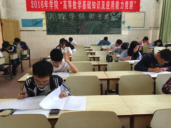 我校2016年高等數(shù)學(xué)基礎(chǔ)知識(shí)及應(yīng)用能力競賽于4月13日下午四點(diǎn)半順利舉行。來自各學(xué)院2015級(jí)的兩百余名學(xué)生報(bào)名參加比賽。
