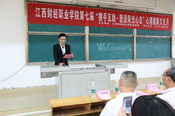 為秉承我校“務實、責任、合力”的精神,落實“五有”教育觀,培養“四具備”人才,推動“四導工作”,深化“心理疏導”,豐富校園文化生活,關注青年學子心靈成長,同時也為了更好地迎接“5.25”大學生心理健康日的到來,5月4日下午4:30,由我校思政部主辦、九江市心理學會協辦,以“攜手互助?塑造陽光心態”為活動主題的“江西財經職業學院第七屆心理健康文化月”開幕式在綜合樓階梯教室五隆重舉行。