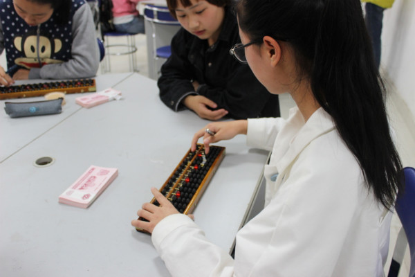 珠算技能分為兩指法和三指法,我校學生分別展示了兩種手法對珠算從1一直到加到100,5050減1到100。