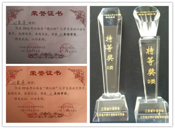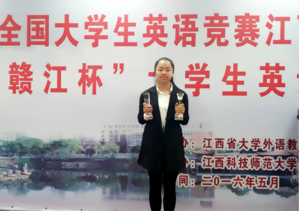 2016年5月7日至9日,一年一度的全國大學生英語競賽(江西賽區(qū))決賽暨“贛江杯”大學生英語競賽在江西科技師范大學舉行。本次決賽共有來自全省50多所高校約1300余名參賽選手參賽,我校15會計26班劉聚萍同學以全省D類筆試第一名的成績榮獲英語綜合競賽特等獎和以口語全省第二名的成績榮獲英語口語競賽特等獎。