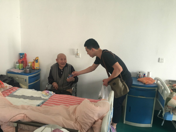 “爺爺,這份是您的,您拿好了。”志愿者張懿將手上的牛奶、水果遞給91歲高齡的李爺爺,老人顫著手接了過來,場面十分溫馨。志愿者們親切的與老人們拉家常,了解他們的生活、食宿情況,傾聽老人們的心聲。老人們都說“今天看到你們這些年輕人,我們這些老人都很激動,我們行動不便,很少去外面活動,在敬老院的日子也很無聊,很孤獨, 你們能來這兒陪我們聊聊天,我們很開心。”