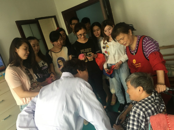 學員張懿給老人送慰問品
