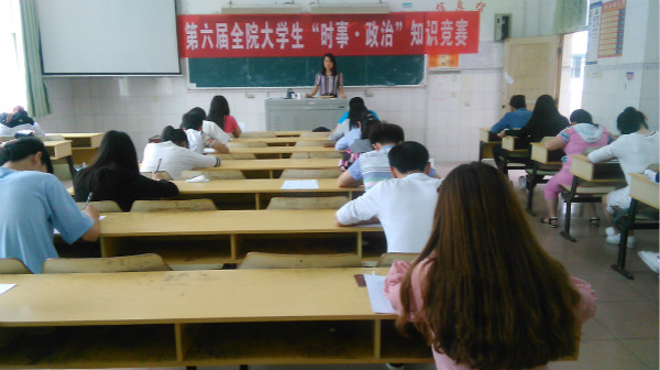 為深入貫徹“兩翼齊飛、一創兩化”總體強校發展戰略,豐富大學生思想政治教育第二課堂,鞏固思想政治理論課課堂教學效果,5月24日下午16:30,思政部組織了第六屆全院大學生“時事·政治”知識競賽。340多名同學參加了競賽。