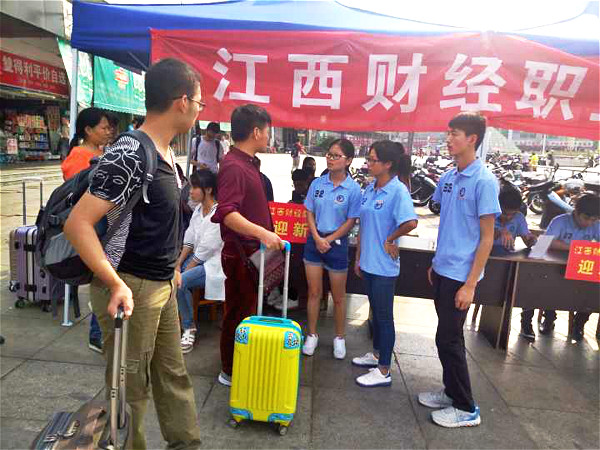 在學院黨委的領導和部署下,院團委承擔了九江火車站、汽車客運站、廬山站的新生接站以及校內專屬志愿服務迎新工作,設置了迎新接站點。