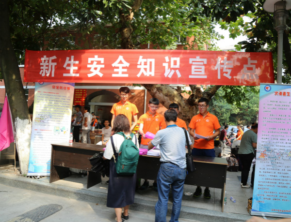 按照學校要求,為凈化校園周邊及校內環境,學校安保人員提前清理違規攤點及小廣告。迎新第一天,安保人員早上7點上崗,在各個路口和交通要道進行管制和疏導,引導新生學生家長車輛有序停放,并對學生宿舍、主干道實行不間斷的24小時安全巡邏。同時,針對新生入學期間詐騙、盜竊等案件多發的特點,學校制作安全知識專欄,在顯眼位置擺放宣傳展板,并聯合廬南社區民警,向新生普及防火、防盜、防網絡詐騙等方面知識,及時編印《校園安全指南》等發放到每個新生手中,在校園內醒目部位張貼安全教育宣傳海報、宣傳標語等,提醒新生及家長做好安全防護工作,確保迎新期間校園秩序井然、安全穩定。