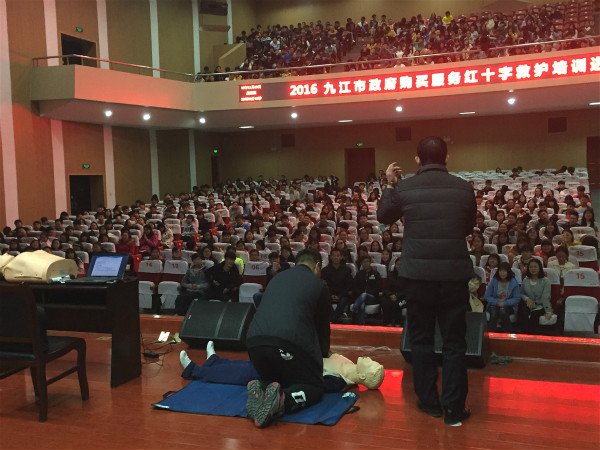 為進(jìn)一步提高全校師生安全防范意識(shí)和互救自救能力,建設(shè)平安校園,根據(jù)江西省紅十字會(huì)與教育廳《關(guān)于印發(fā)的通知》精神,結(jié)合我校實(shí)際情況和九江市紅十字會(huì)救護(hù)培訓(xùn)中心工作安排,我校于11月3日至11月10日對(duì)全校16級(jí)四千余名學(xué)生進(jìn)行應(yīng)急救護(hù)普及培訓(xùn),于11月13日對(duì)團(tuán)委選送的30名學(xué)生會(huì)干部進(jìn)行應(yīng)急救護(hù)員持證培訓(xùn)。