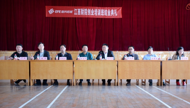 4月14日,南昌校區2017年大學生創業培訓班結業儀式在綜合樓大禮堂舉行。校黨委委員、副校長、南昌校區黨工委書記蔡宜華,進賢縣人社局副局長何仁永,意風教育集團董事長黃華出席了結業儀式。