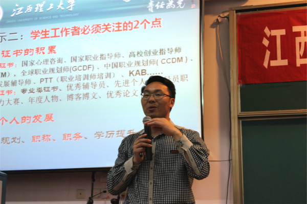 4月21下午,我校在七樓報告廳舉辦2017年度班主任輔導員培訓第二講,學校邀請到了江西理工大學材料科學與工程學院黨委副書記饒先發為學校全體班主任進行了一場精彩的講座。