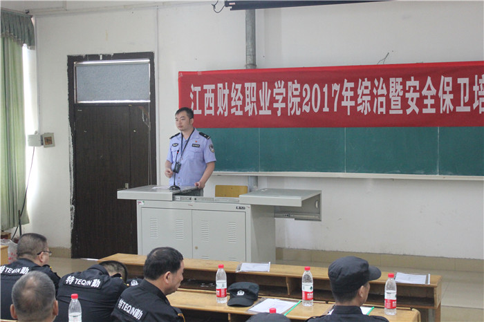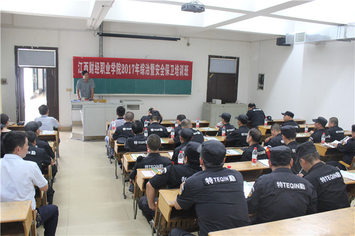 8月28日-29日,為期兩天的2017年綜治暨安全保衛工作培訓班在綜合樓二樓階二教室舉行,安全保衛處全體工作人員、九江潔美物業公司管理人員、學校全體保安等50余人集中參加了 “安保人員行為規范”、“保安崗位工作規范”、“保安基本技能”、“校園應急處理知識”、“校園消防安全知識”等內容培訓。