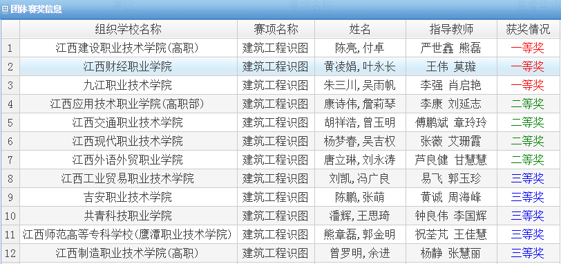 11月11日,2017年江西省職業院校建筑工程識圖競賽(高職組)在南昌舉行,由江西省教育廳首次主辦,在賽項設計及競賽規則上均與國賽接軌,我校派出由財稅金融(建筑工程)學院王偉、莫璇擔任指導教師,黃凌娟、葉永長兩位同學組成的代表隊參賽。近日,從江西省職業教育綜合管理平臺獲悉,我校代表隊在全省26所高職院校代表隊中脫穎而出,以總分第二的好成績榮獲一等獎。