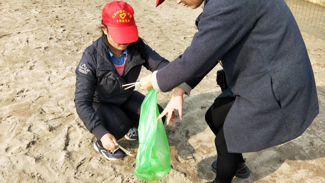 8時30分,參加此次活動的志愿者們在財院文化廣場集合,前往沙灘進行清理活動。此次活動主要是對沙灘垃圾進行清理,志愿者們到場候積極聽從組織安排,分工合作,把沙灘上被游客遺留下的煙頭,兒童玩具,包裝袋等一一清理。志愿者們忙碌的身影也成為沙灘上一道獨特的風景線,贏得不少游客的贊許,有的游客還自覺加入到清理垃圾的活動中來。