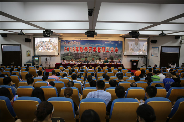 8月31日上午,我校在七樓學術報告廳召開2018年秋季開學教職工大會。校領導班子成員和全體教職員工參加會議,南昌校區(qū)通過同步視頻參會。校黨委書記林火平對上學期工作進行總結,并部署新學期各項工作。會議由校黨委副書記、常務副校長何先應主持。
