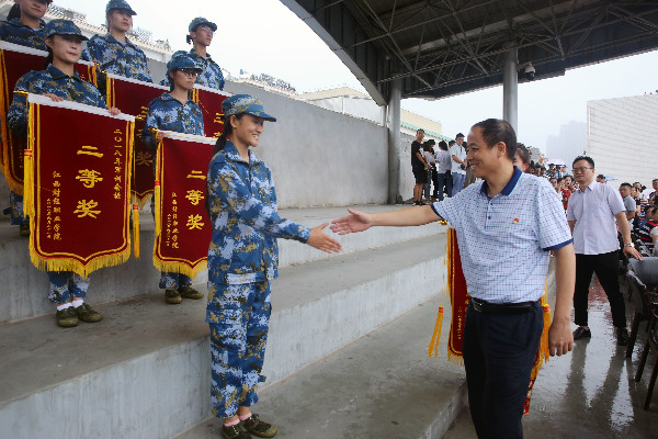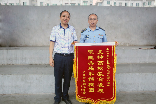 閱兵式后,林火平代表學(xué)校向中國人民解放軍空軍某部贈送了錦旗,感謝部隊對我校軍訓(xùn)工作的大力支持。校領(lǐng)導(dǎo)和部隊首長還為軍訓(xùn)優(yōu)勝隊伍頒發(fā)了錦旗。