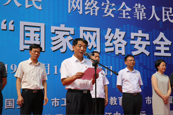 9月16日上午,九江市第六屆“國家網絡安全宣傳周”活動啟動儀式在我校東門廣場舉行。市委宣傳部副部長代和沐出席并講話,校黨委副書記、常務副校長何先應出席儀式,市公安局、市國安局、市教育局、市工信委、市總工會、團市委、市婦聯、市文廣新局、人行九江中心支行等相關負責人,以及地方、企業、媒體、學生代表近300人參加,啟動儀式由市網信辦專職副主任歐陽小竹主持。