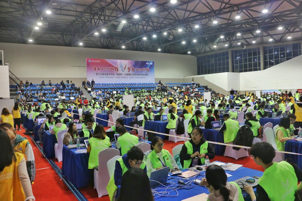 2019年11月17日, 我校應(yīng)用型本科生應(yīng)邀派1支隊(duì)參加第十五屆大學(xué)生“新道杯”沙盤模擬經(jīng)營(yíng)大賽全國(guó)總決賽, 上午8:30,來(lái)自西南政法大學(xué)、北京工商大學(xué)、西南財(cái)經(jīng)大學(xué)等120所本科院校代表隊(duì)600名參賽選手進(jìn)入江蘇金陵科技學(xué)院賽場(chǎng),拉開競(jìng)賽序幕。