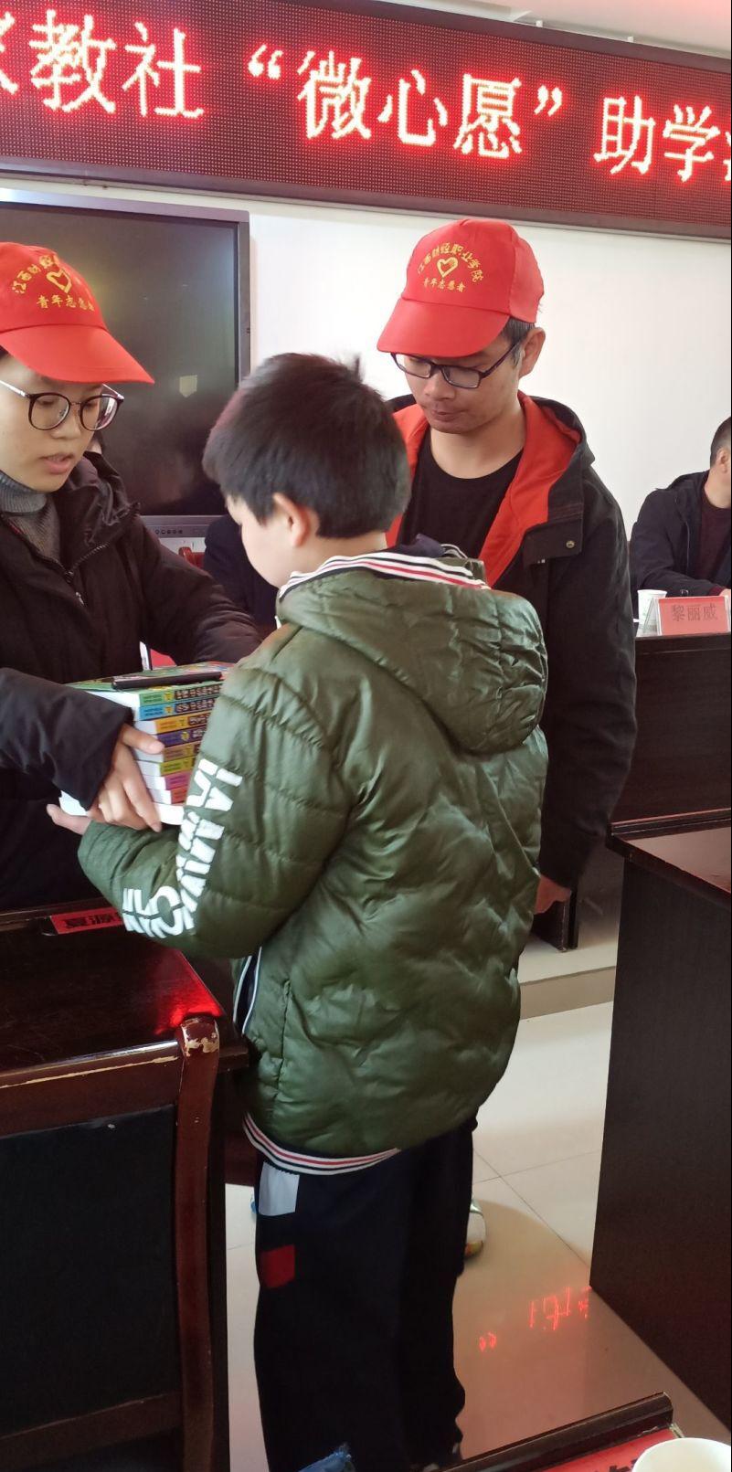 2019年12月6日,江西財經職業學院公益家教社10名志愿者在指導老師柯新華教授帶領下,赴武寧縣魯溪鎮開展困境兒童“微心愿”助學活動。