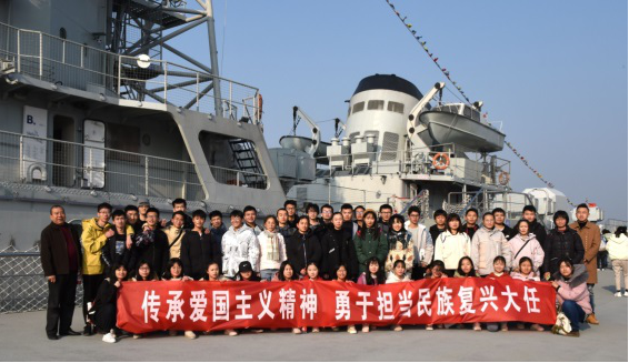 為更好地在青年大學生中開展愛國主義教育,進一步堅定他們刻苦學習、報效祖國的志向,豐富思政課實踐教學內(nèi)容,2019年12月6日,思政部組織2019級本科實驗同學赴湖口縣“九江軍事文化主題樂園”參觀“九江艦”。