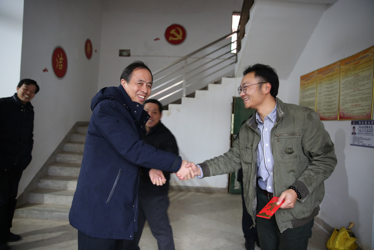 為貫徹落實黨的十九大精神和省市有關脫貧工作會議精神,充分體現(xiàn)黨和政府對貧困戶和基層一線扶貧干部的關心關愛,切實幫助貧困戶過上一個平安祥和的新春佳節(jié)。2020年1月9日,校黨委書記林火平一行冒著大雨到我院幫扶點--都昌縣和合鄉(xiāng)橋嶺村進行春節(jié)走訪慰問,校黨委副書記、常務副校長何先應陪同走訪。