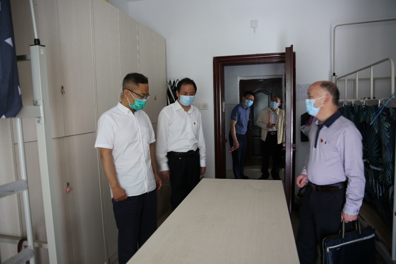 李偉一行深入學生宿舍、食堂、教學樓、隔離觀察點等場所,重點了解和察看了學生返校復學系列工作方案、公共區域衛生消殺、校園人員流動管控、防控工作重點環節落實、防疫物資儲備、應急處置預案及應對措施等情況,聽取學校負責人關于學生返校學習有關工作準備情況的介紹,對學校疫情防控和學生返校學習工作進行現場指導。