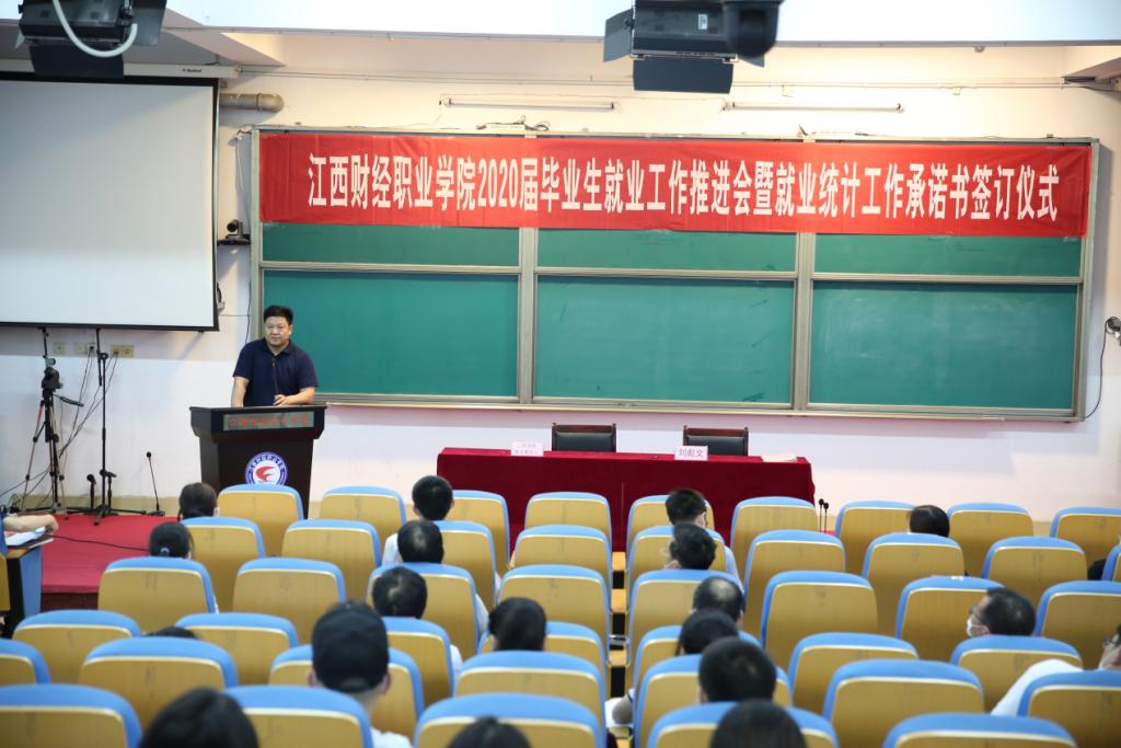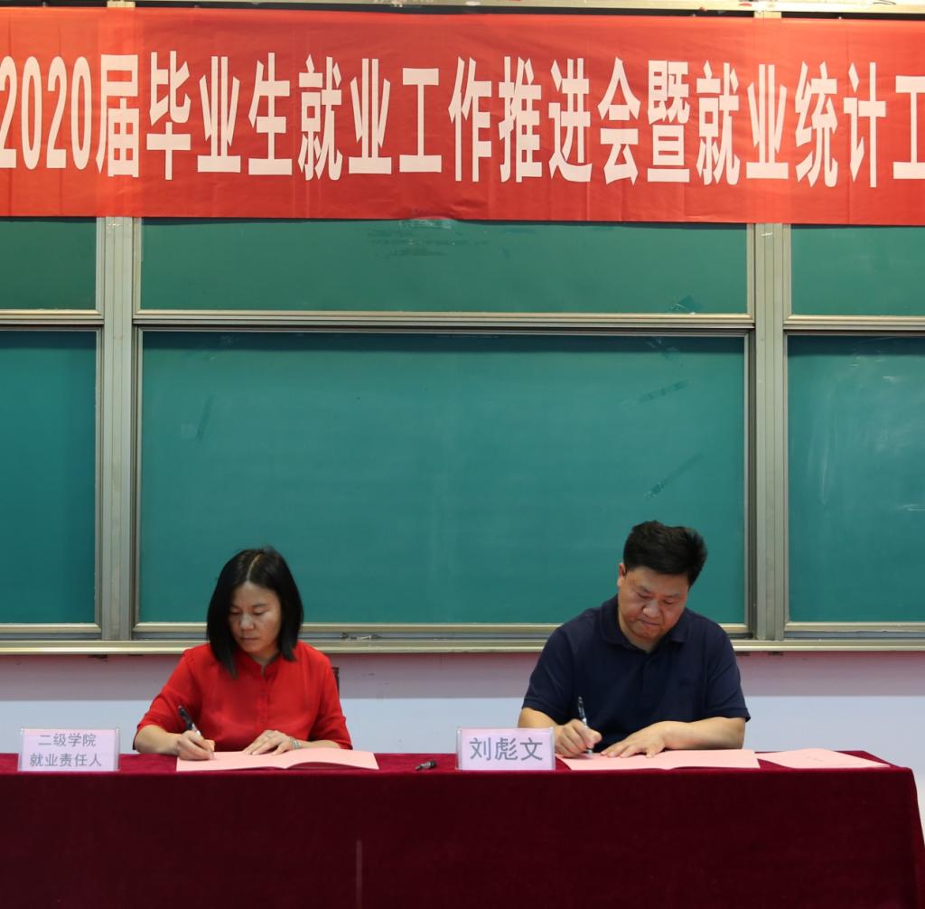 為進一步做好我校2020屆畢業(yè)生就業(yè)工作,確保畢業(yè)生就業(yè)統(tǒng)計數(shù)據(jù)的質(zhì)量,努力實現(xiàn)我校畢業(yè)生更高質(zhì)量更充分就業(yè),5月25日下午,我校在綜合樓七樓報告廳召開2020屆畢業(yè)生就業(yè)工作推進會暨就業(yè)統(tǒng)計工作承諾書簽訂儀式。校長劉彪文,校黨委委員劉超出席會議,招生就業(yè)處全體人員,各二級學(xué)院書記、院長和全體2020屆畢業(yè)生輔導(dǎo)員、班主任參加會議。會議由校黨委委員劉超主持。