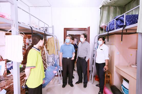 隨后,呂朝明一行來到校園,仔細察看了學生返校報到點、防疫物資儲備中心、學生宿舍、食堂、集中隔離室、校醫務室等場所,詳細了解我校疫情防控和學生返校復學各項工作的開展情況。
