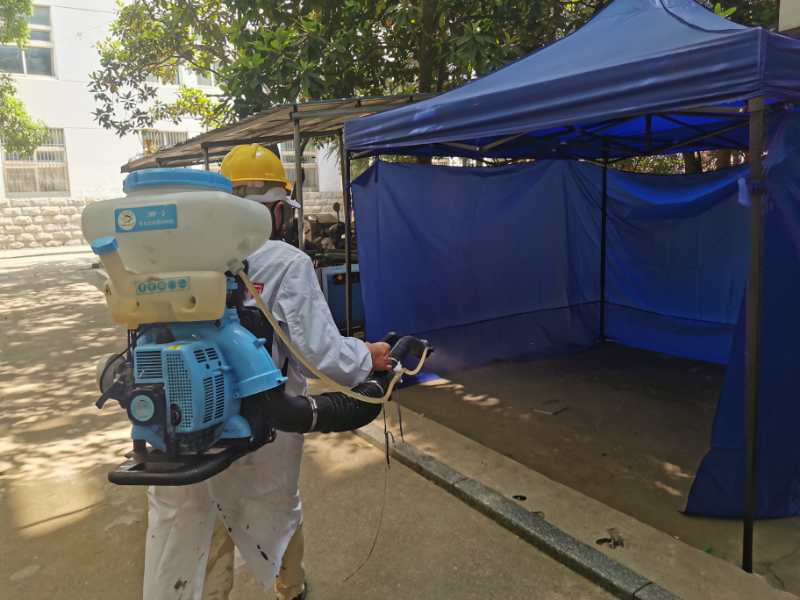 做好全校范圍內(nèi)的疫情消毒工作.此次消毒嚴(yán)格按照疫情期間校園消毒預(yù)定方案,對(duì)公共區(qū)域內(nèi)衛(wèi)生先進(jìn)行打掃再消毒,消毒后并加強(qiáng)通風(fēng);對(duì)電梯、公共樓梯、樓梯扶手、門(mén)把手、洗漱臺(tái)等區(qū)域每天最少進(jìn)行兩次消毒。消毒劑以84消毒液為主,根據(jù)不同的消毒場(chǎng)所采用擦拭與噴灑等方式進(jìn)行消殺。同時(shí)此次的校園環(huán)境綜合整治還對(duì)校園內(nèi)的路面破損情況進(jìn)行了摸查與修復(fù),綜合樓后的垃圾堆放點(diǎn)也進(jìn)行了全面清理等。