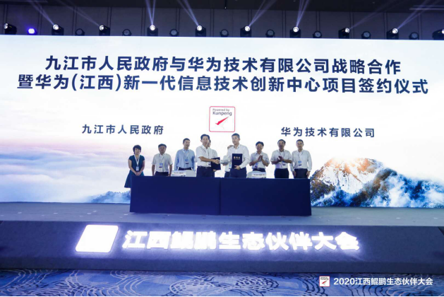 在本次大會上,九江市人民政府與華為達成戰略合作,并宣布共建華為(江西)新一代信息技術創新中心。九江市人民政府副市長李小平,華為公司江西區域副總經理張濤代表雙方簽署合作協議。本次合作旨在發揮九江市的區位、人才、生態、軟件和信息技術服務業等優勢,結合華為的技術儲備和產業整合能力,通過華為(江西)新一代信息技術創新中心促進九江市數字經濟產業發展,重點圍繞鯤鵬、人工智能、5G、工業互聯網、區塊鏈等新一代信息技術,加速政府信息技術應用創新的進程,助力九江市傳統產業轉型升級以及新興產業發展。