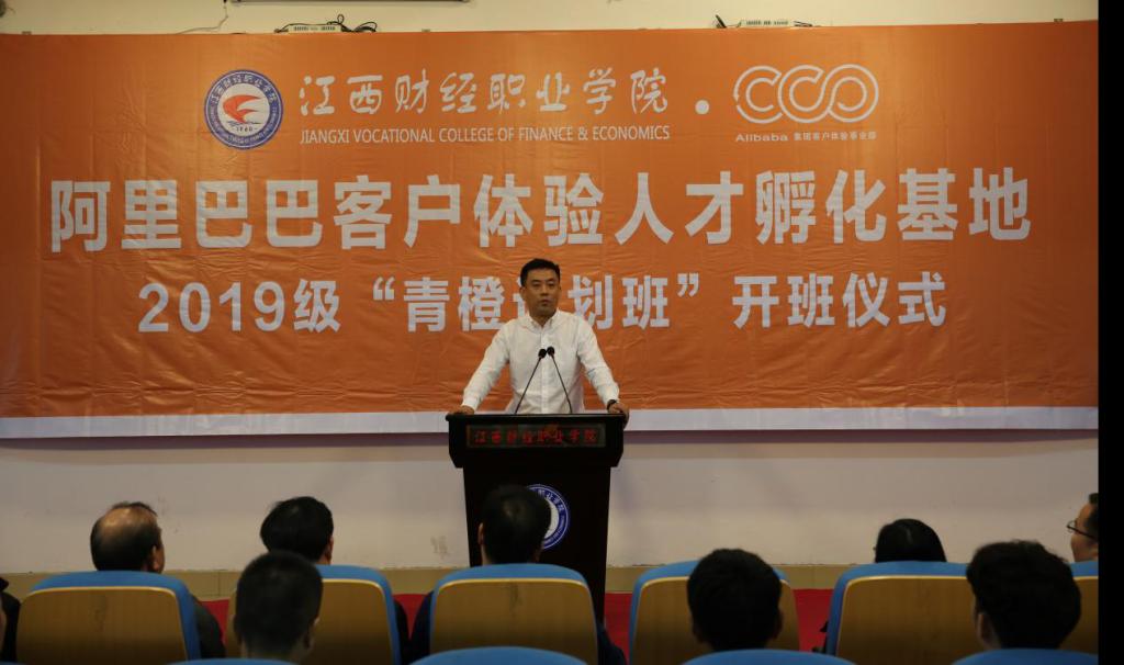 9月22日上午,江西財經職業學院阿里巴巴客戶體驗人才孵化基地2019級“青橙計劃班”開班儀式在綜合樓七樓報告廳隆重舉行。阿里巴巴集團客戶體驗事業部戰略合作總經理鄒輝、阿里巴巴集團客戶體驗事業部戰略合作總監劉晶晶、阿里巴巴集團客戶體驗事業部校企合作運營專家嚴治平、校黨委副書記、校長劉彪文、校黨委副書記、常務副校長何先應、教務處處長程文忠、合作發展處處長周執平、繼續教育中心黨總支書記兼宣傳統戰處副處長張圣、教務處副處長龔少卿、工商管理學院黨政班子及2019級青橙計劃班130名學員參加了開班儀式。儀式由工商管理學院陳其姝主持。
