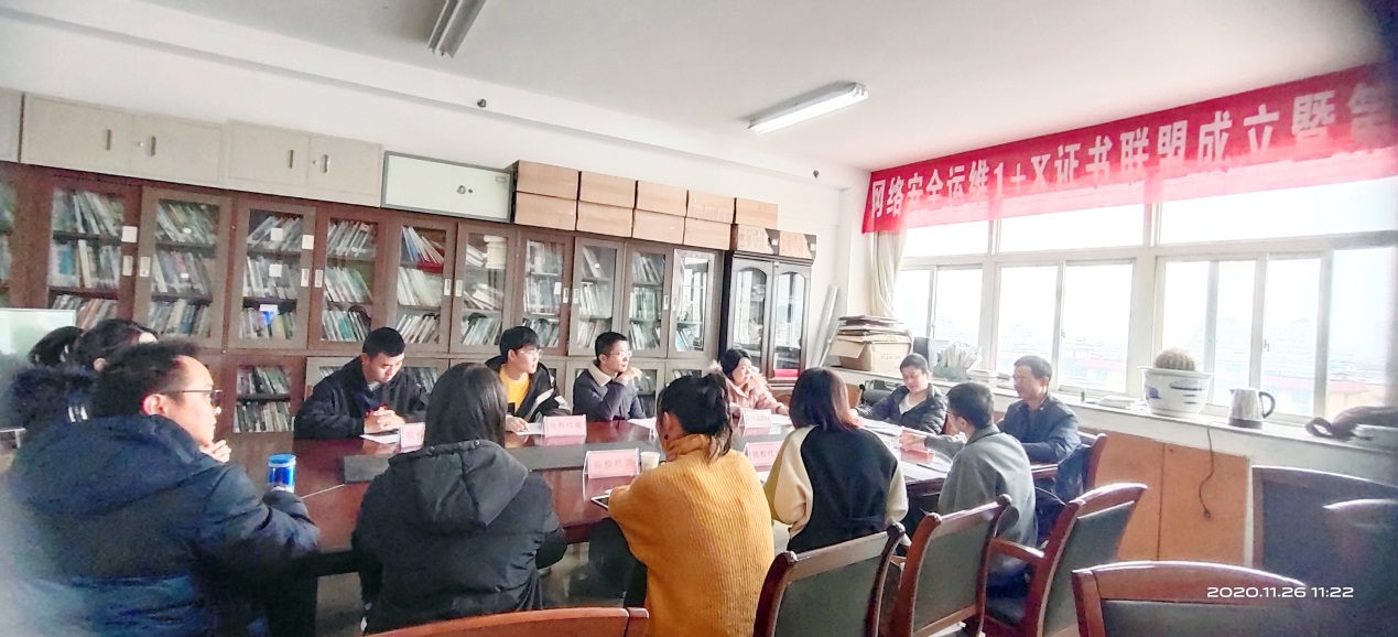 為深入貫徹落實《國家職業教育改革實施方案》(國發〔2019〕4號)和教育部等四部門印發《關于在院校實施“學歷證書+若干職業技能等級證書”制度試點方案》(教職成〔2019〕6號)等文件精神和工作部署,加快落實網絡安全運維職業技能等級證書制度試點工作,根據江西省教育廳《關于公布2020年江西省1+X證書聯盟牽頭院校名單的通知》要求,2020年11月26日上午10點,江西省 “網絡安全運維” 1+X證書聯盟成立暨第一次工作會議在我校順利召開。