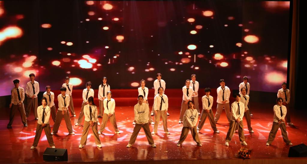 下篇“展望”,勾畫了學院未來發展的壯美藍圖。雜技《步步高》、詩朗誦《青春財院》演繹了財院兒女以青春報效祖國的堅毅、民族舞《水之靈》、街舞《龍拳》展現了財院學子熱情奔放的青春風采、劉彪文校長攜教職工“金聲”合唱團演唱的《我和我的祖國》《再一次出發》將晚會推向最高潮。