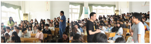 在交流過程中,劉金明校友分享了自己求職、工作經(jīng)歷及感悟,并指導(dǎo)學(xué)生如何做好求職的準(zhǔn)備工作。告誡同學(xué)們?cè)谛F陂g要學(xué)好專業(yè)知識(shí)和技能,培養(yǎng)自己的綜合素養(yǎng)、特別是財(cái)商意識(shí)、吃苦耐勞精神,理性確立目標(biāo)定位、自信自強(qiáng)、持之以恒。唐鎮(zhèn)江校友分享了自己的奮斗歷程,特別是詳細(xì)分享了自己14年從事貨代銷售業(yè)務(wù)的心得體悟和銷售技能,干貨滿滿,對(duì)學(xué)生有重要的啟迪作用。分享之后,兩位校友與學(xué)生進(jìn)行了互動(dòng)交流,詳細(xì)地回答了學(xué)生提出的各種問題。