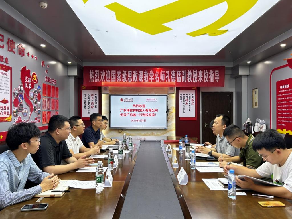 6月5日上午,廣東博智林機器人有限公司產教融合組副組長兼總監何云廣一行5人來訪我院,就產教融合、校企合作相關事項開展交流。城鄉建設學院副院長呂亨龍、副院長張樂、校辦副主任莫璇以及專業教師杜波等參加交流。