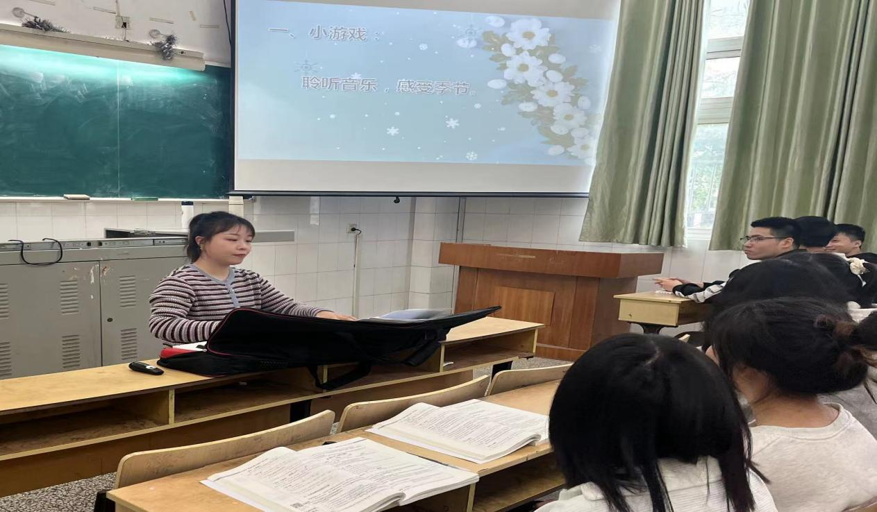 4月26日下午,中文教研室呂相宜老師在教學樓210教室開展《2022年北京冬奧會主題曲—<雪花>賞析》公開課教學。呂老師在音樂上有自己的見解,課堂上語言生動、教態(tài)自然,美妙的鋼琴聲把同學們拉進了課堂,課程從“聆聽音樂,感受季節(jié)”小游戲環(huán)節(jié)開始,引導同學感受音樂中的季節(jié)變換。以體驗感觸音樂為主,以情貫穿始終,通過欣賞、講解和學唱歌曲等教學步驟,將堅韌高潔的奧運精神有機融入了課堂教學中。