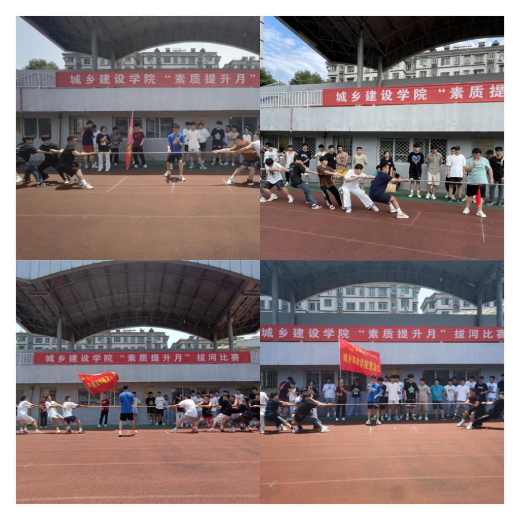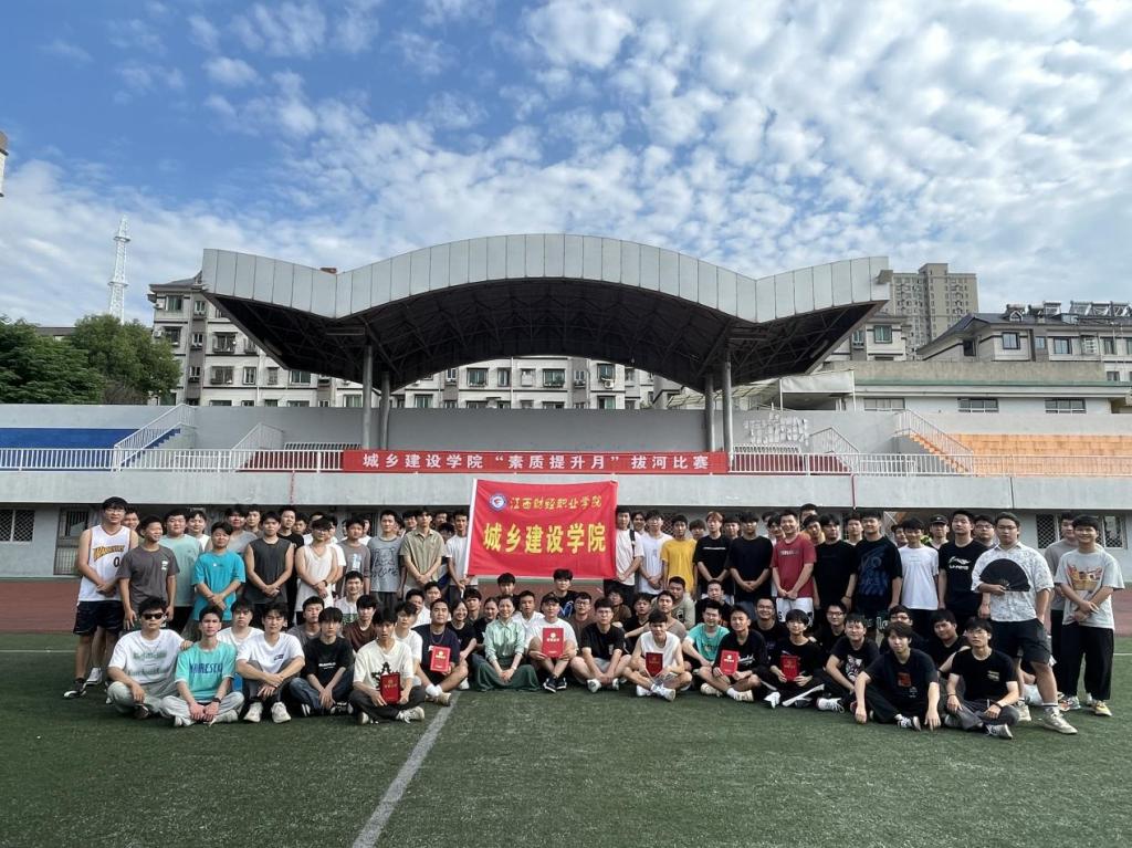 為進一步豐富校園文化生活,切實增強學生體質,促進學生全面發展,推動我校“學生綜合素質提升月”系列活動開展,江西財經職業學院城鄉建設學院“素質提升月”拔河比賽在校園內熱鬧開場。經過多日角逐 ,2023年6月7日拔河比賽決賽在校田徑場展開。