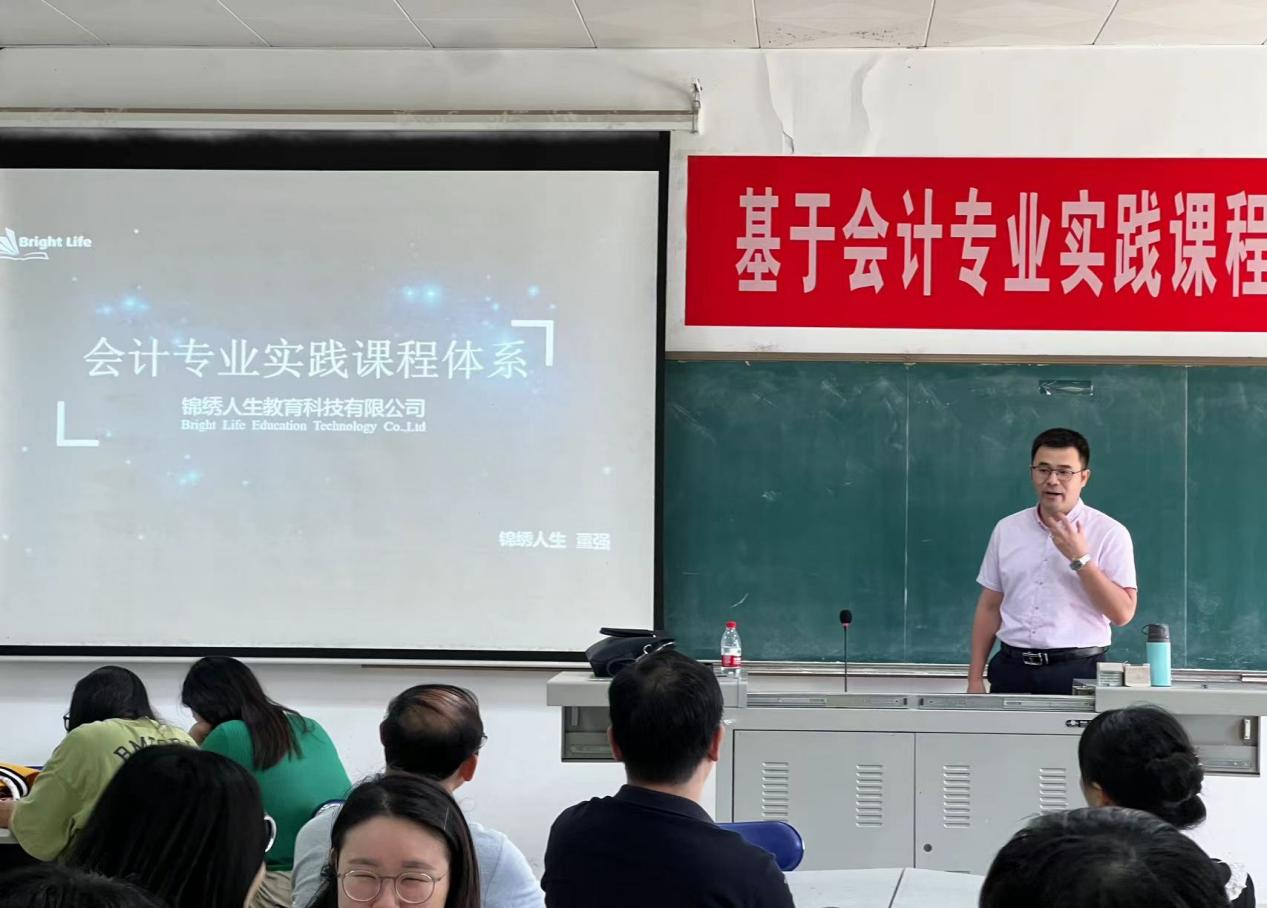 為了進一步提升教師課堂變革的實施成效,推進學生職業實踐能力精準對接市場需求,6月14日下午,會計學院全體專業教師在東區實訓樓3301教室開展集體教研活動。特別邀請錦繡人生(北京)教育科技有限公司常務副總董強就基于會計專業實踐課程體系的課堂教學改革進行專題講座。