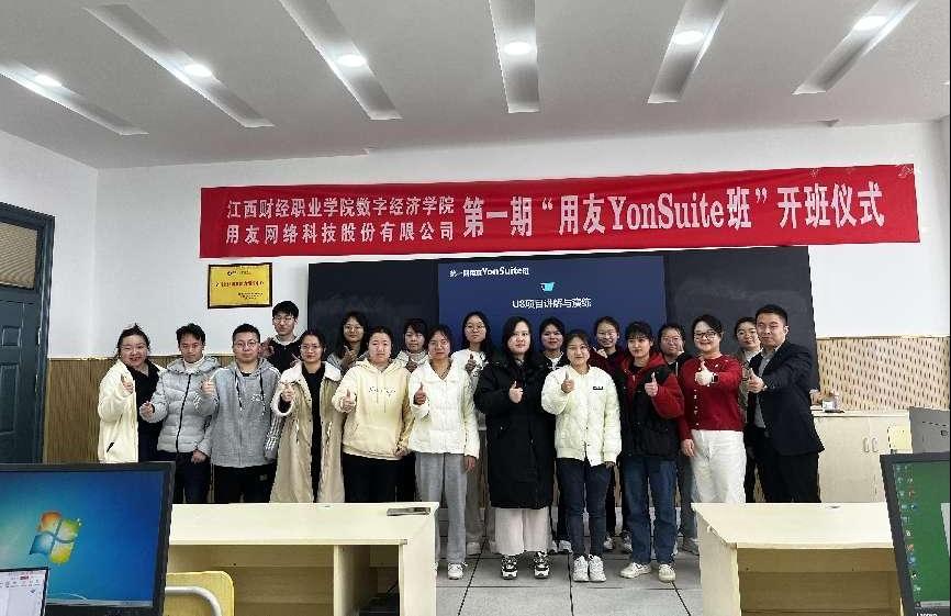 今年二月,數字經濟學院與用友網絡科技股份有限公司聯合開設“用友YonSuite班”,從大三學子中遴選了15位學生,目前已陸續與相關公司簽訂就業協議并入職實施顧問崗位實習。