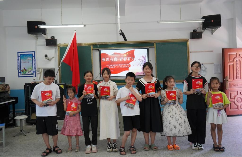 為進(jìn)一步做好留守兒童關(guān)愛(ài)工作,助力留守兒童健康成長(zhǎng),7月11日,江西財(cái)經(jīng)職業(yè)學(xué)院數(shù)字經(jīng)濟(jì)學(xué)院“青春筑夢(mèng)”社會(huì)實(shí)踐隊(duì)前往九江市修水縣復(fù)原鄉(xiāng)復(fù)原中小學(xué)開(kāi)展“七彩假期 暖心相伴”的童心港灣活動(dòng),豐富了小朋友們的暑假生活,呵護(hù)農(nóng)村留守兒童健康成長(zhǎng),守護(hù)農(nóng)村留守兒童的精神家園。