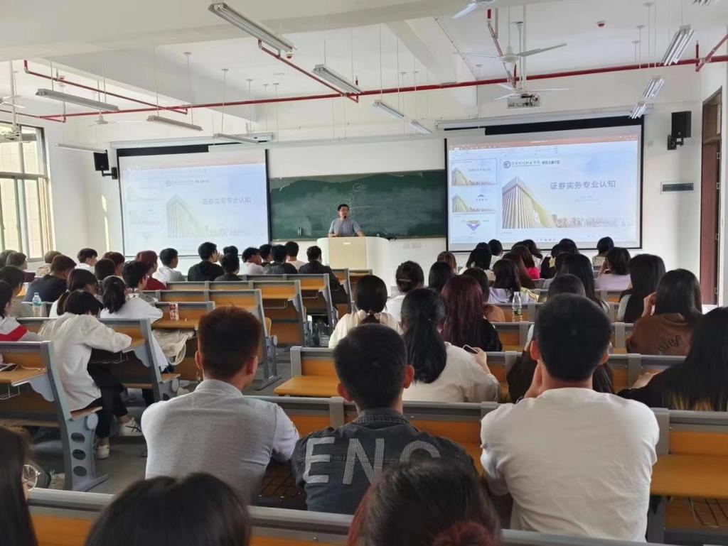 為幫助2023級(jí)新生更好地適應(yīng)學(xué)校生活,順利開(kāi)啟自己的專(zhuān)業(yè)學(xué)習(xí)之旅,10月14日,財(cái)稅金融學(xué)院證券教研室教師為2023級(jí)金融科技應(yīng)用、財(cái)富管理及證券實(shí)務(wù)專(zhuān)業(yè)的新生舉辦了專(zhuān)業(yè)認(rèn)知及職業(yè)規(guī)劃指導(dǎo)講座。