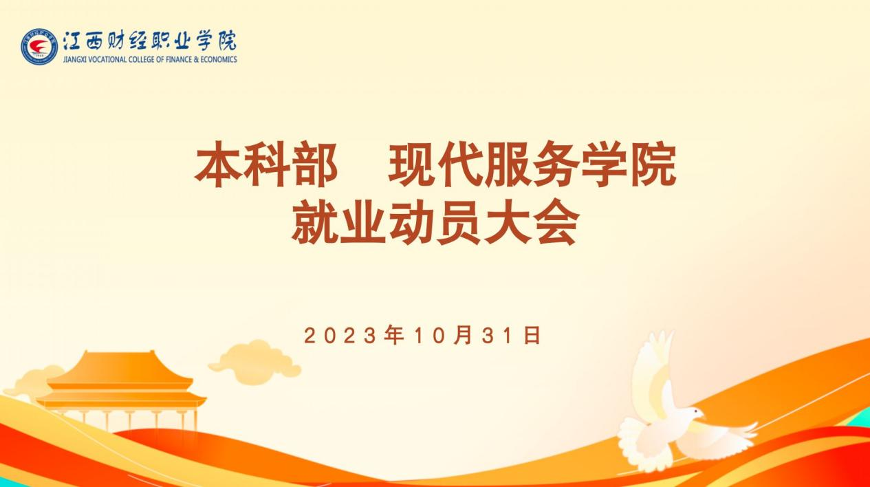 為扎實(shí)做好2024屆畢業(yè)生就業(yè)工作,10月31日上午,本科部、現(xiàn)代服務(wù)學(xué)院于綜階一教室召開(kāi)2024屆畢業(yè)生就業(yè)工作動(dòng)員會(huì)。學(xué)院主要負(fù)責(zé)人、專職教師代表、輔導(dǎo)員、畢業(yè)班班主任及2024屆本專科畢業(yè)生參加會(huì)議。