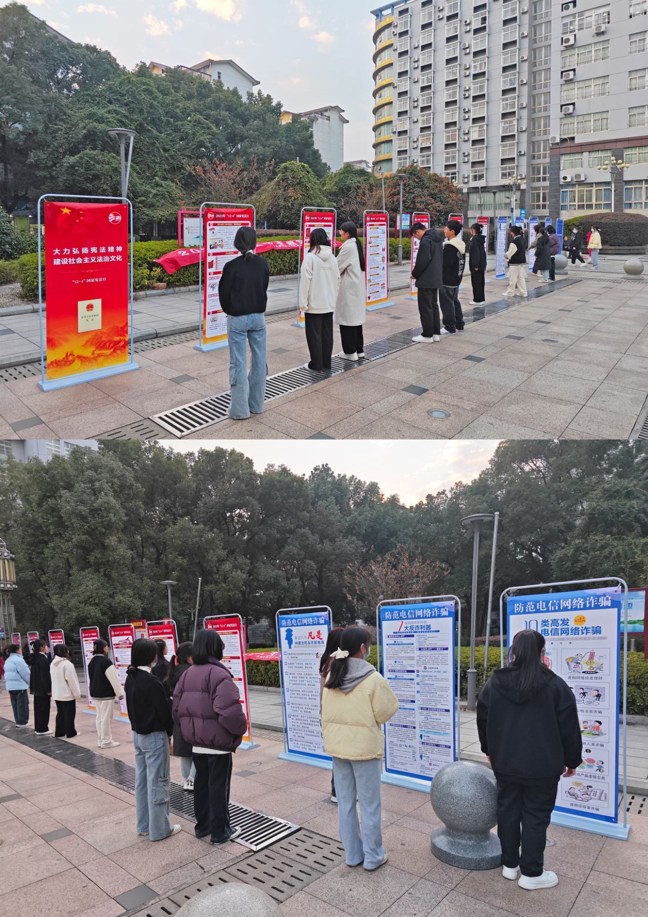 2023年12月4日是我國第十個憲法日,主題為“大力弘揚憲法精神 建設社會主義法治文化”。為深入學習宣傳習近平法治思想,弘揚憲法精神,維護憲法權威,現代服務學院聯合人民路街道湖濱社區,在湖濱小區廣場組織開展“國家憲法日”主題宣傳活動。