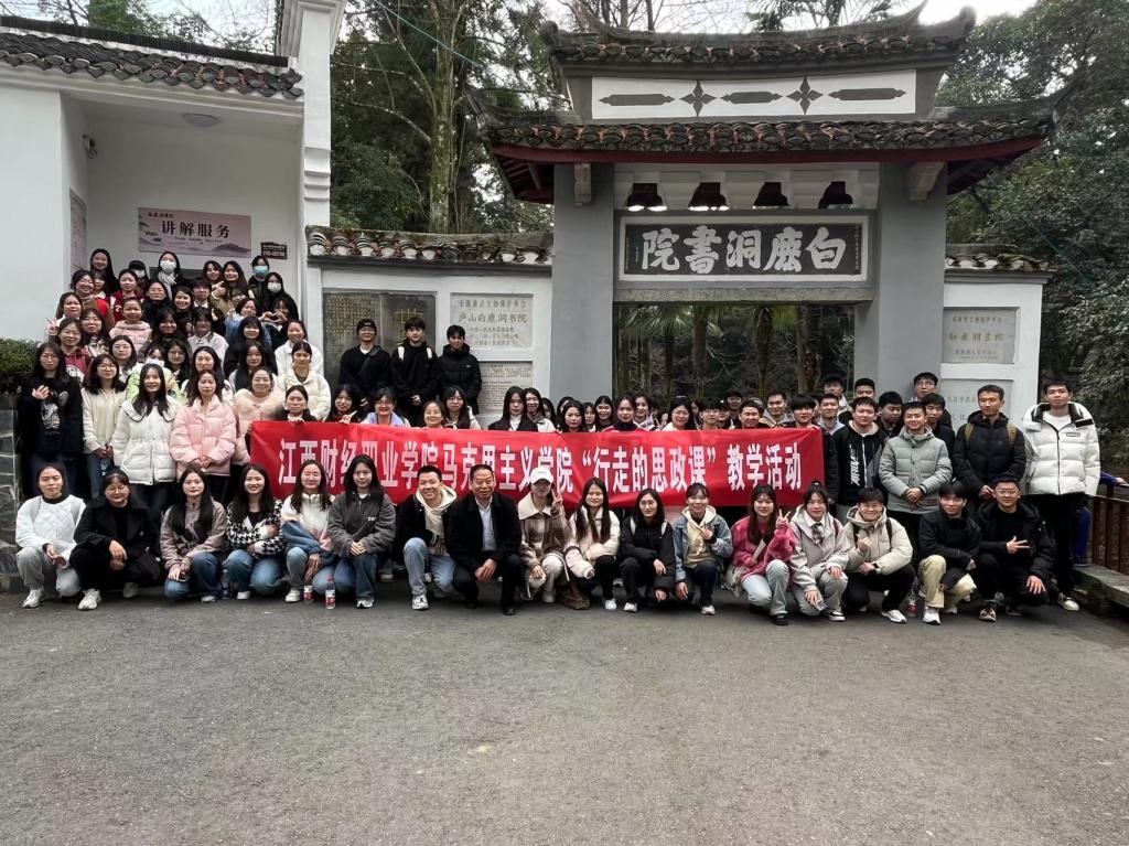 為認真貫徹江西省委教育工作領導小組《全國“大思政課”建設綜合改革試驗區江西省問題式專題化團隊教學改革實施方案》,落實《江西財經職業學院思政課問題式專題化團隊教學實施辦法》,充分利用校內外資源,發揮思政大課堂育人合力,有效提升思政課的教學效果,12月14日,馬克思主義學院組織2023級專本聯培會計學專業學生前往家門口“大思政課”實踐教學基地——廬山白鹿洞書院開展“認真學習貫徹習近平文化思想 建設中華民族現代文明”專題教學。教學由思政課老師朱欣成和文化學者、原白鹿洞書院管理委員會副主任郭宏達共同進行。