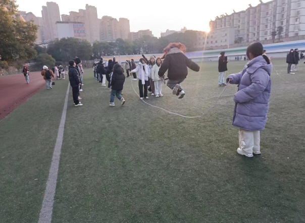 本次活動(dòng)形式多樣,既有考驗(yàn)團(tuán)隊(duì)協(xié)調(diào)能力的跳長(zhǎng)繩活動(dòng),也有考驗(yàn)伙伴齊心協(xié)力的拔河比賽,更有考驗(yàn)個(gè)人運(yùn)動(dòng)能力的單人跳繩比賽等。為提高同學(xué)們參與的積極性,學(xué)院準(zhǔn)備了一些生活日用品作為活動(dòng)的小獎(jiǎng)品。這幾天恰遇九江降溫,天氣寒冷,但這絲毫沒(méi)有影響到同學(xué)們參與活動(dòng)的激情。早晨天剛蒙蒙亮,當(dāng)大部分同學(xué)還在睡夢(mèng)中,國(guó)際教育學(xué)院的同學(xué)們就來(lái)到了操場(chǎng),有的投入比賽,有的在吶喊助威,個(gè)個(gè)精神飽滿,斗志昂揚(yáng),充分體現(xiàn)了國(guó)際教育學(xué)院的學(xué)生的蓬勃朝氣。