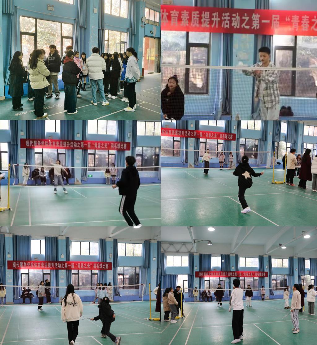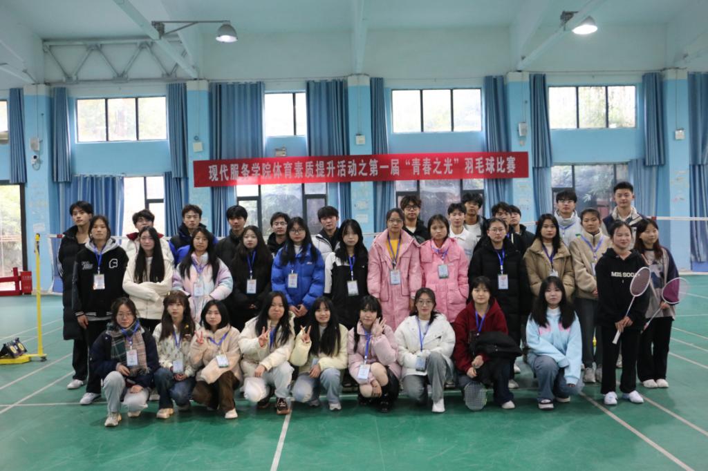 為豐富校園文化生活,激發學生的運動興趣,促進學生的身心健康,12月21-22日,現代服務學院在潯陽校區羽毛球館成功舉辦了第一屆“青春之光”羽毛球比賽。本次比賽共設男、女單打,男、女雙打以及混合雙打五個項目,我院22、23級各專業近70位選手參加。