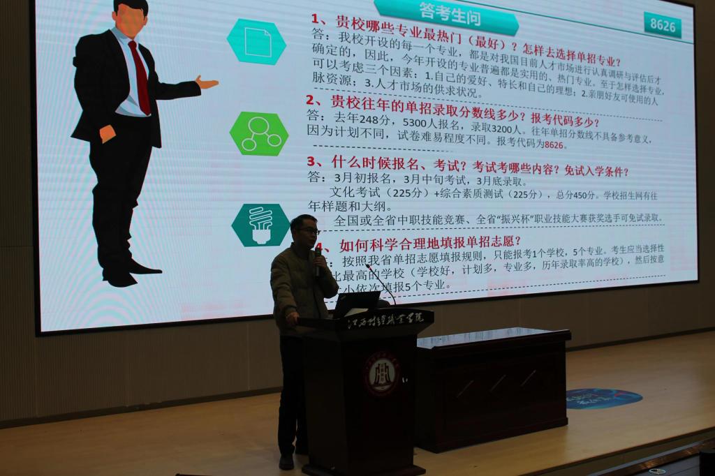 九江華東電子信息學校師生先后參觀了圖書館、學生宿舍、教學實訓場地、食堂等,并集中聽取了我校單招政策宣講、各二級學院院情、專業介紹。