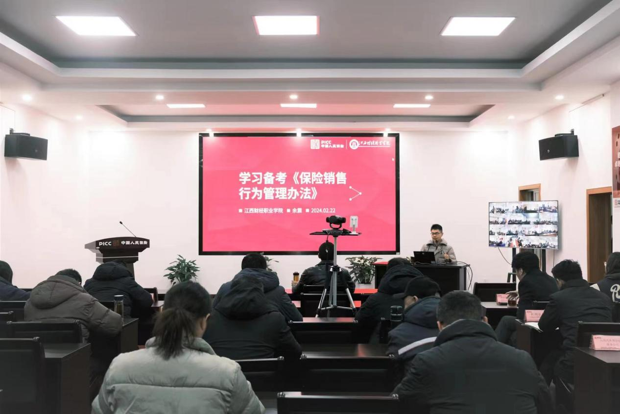 2月22日,財稅金融學院余震赴人保財險九江市分公司開展《保險銷售行為管理辦法》培訓工作。參加本次培訓的有市公司班子成員、中層管理干部、各縣(區)支公司員工共756人。本次培訓由人保財險九江市分公司黨委委員、副總經理袁唯才主持。