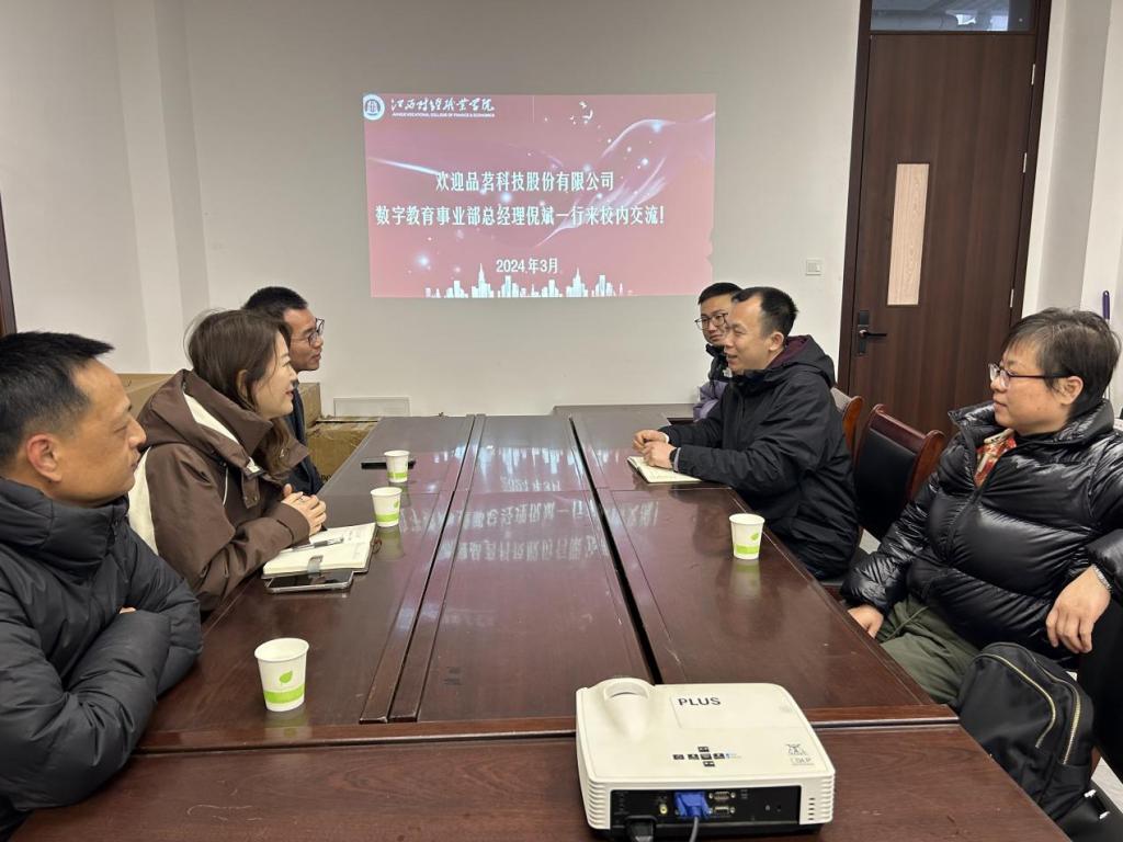 2月28日下午,品茗科技股份有限公司數字教育事業部總經理倪斌、數字教育事業部技術總監盛黎、江西地區銷售經理蔡志平一行來我校調研交流。城鄉建設學院副院長呂亨龍熱情接待了倪斌一行,城鄉建設學院副院長張樂、工程管理教研室主任吳翠翠、骨干教師蔡小萍等參加了交流。